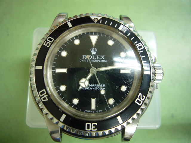 2016年5月28日 / 最終更新日時 : 2019年11月1日 complete-watch ロレックス修理履歴 ロレックスサブマリーナRef.5513オーバーホール ロレックスサブマリーナRef.5513のオーバーホール例 オーバーホール前の画像 弊社で2回目のオーバーホール品ですが、前回の メンテナンスから9年が経過しておりケースの腐食 や部品の消耗が見られます。 オーバーホール後の画像 交換した部品は風防、竜頭、ゼンマイで5気圧防水 検査までクリアーしましたが、ケースに腐食痕が あるため過信は禁物です。次回は5年以内に定期 点検されるようにお願いしました。 総費用77,000円(税別)ライトポリッシュ、 1年保証品