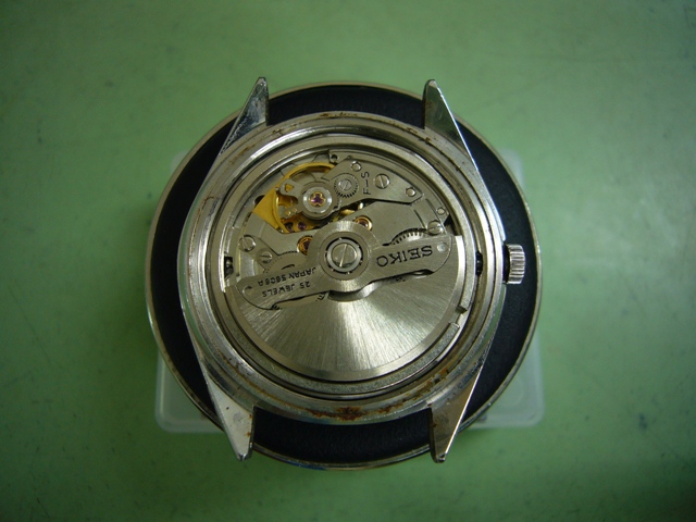 2016年1月4日 / 最終更新日時 : 2019年11月7日 complete-watch セイコー修理履歴 セイコーロードマチック5606-7191のオーバーホール セイコーロードマチック5606-7191のオーバーホール オーバーホール前の画像 5年ほど前に一度オーバーホールでお預かりしたお品物です。 今回は竜頭の引き戻しに不具合が出ておりましたが、カレンダーの 早送り部品は無事でした。 オーバーホール後の画像 部品は各種パッキン類とオシドリ交換で済みました。 ケースのサビも落ちて生活防水もクリアーしました。 56系の機械は夜間に日付や曜の早送りを行わないように 気をつけていただきたいお品物です。 総費用30,000円(税別)